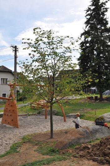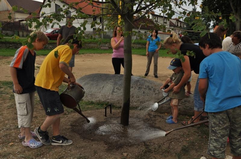 Samotné vysazení lípy proběhlo v pátek dopoledne, oproti původnímu plánu z bezpečnostních důvodů bez přítomnosti dětí. Odpoledne se již neslo ve znamení aktivit pro děti. Nejprve byl strom „pokřtěn“ a řádně zalit, následně byly pro děti připraveny zajímavé aktivity spojené s jejich výtvarnými dovednostmi. První skupina dětí pracovala na vytvoření velkého papírového stromu, jehož listy děti vystřihovaly z barevných papírů a nalepovaly na arch papíru balicího (tento papírový strom je vyvěšen na OÚ). Druhá skupina dětí souběžně pracovala s hlínou a vytvářela hliněné domečky, které budou v průběhu září vypáleny a vystaveny na hřišti.