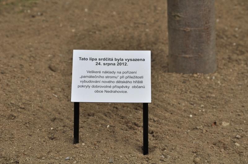Vysazení lípy na návsi v Nedrahovicích proběhlo v pátek 24. srpna 2012. Zakončil se tak projekt budování nového dětského hřiště, který započal v červnu 2012.